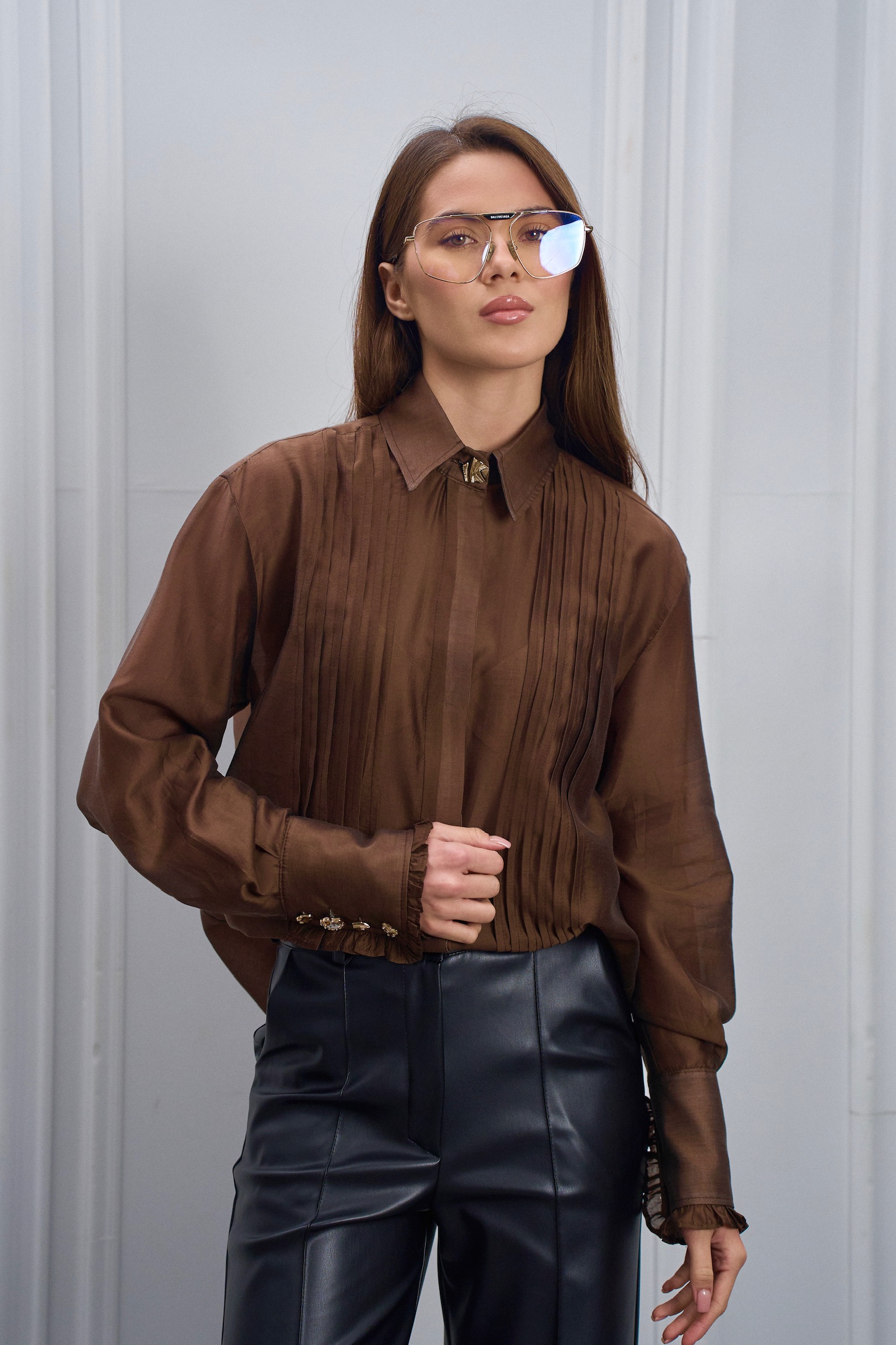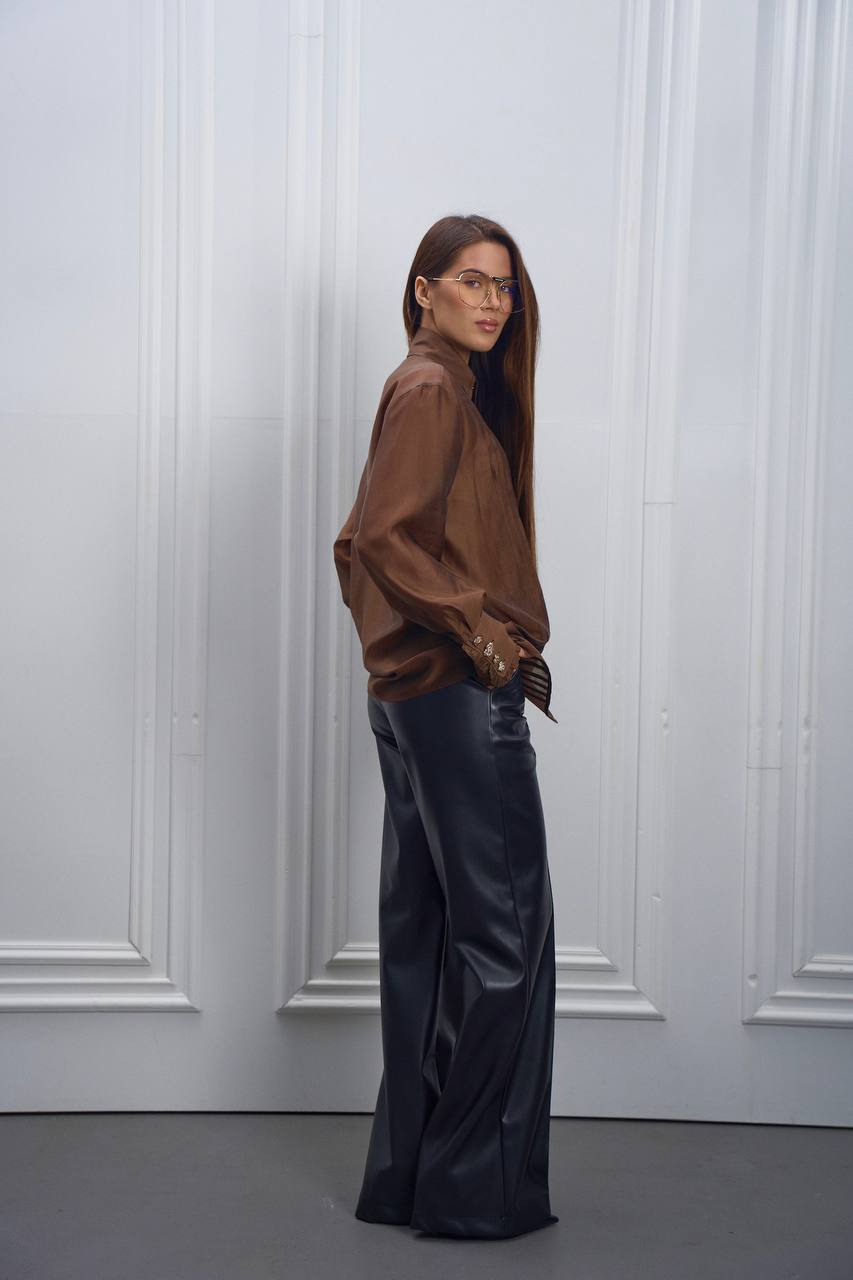 - Тканина має легкий благородний блиск, завдяки чому блуза виглядає вишукано та дорого