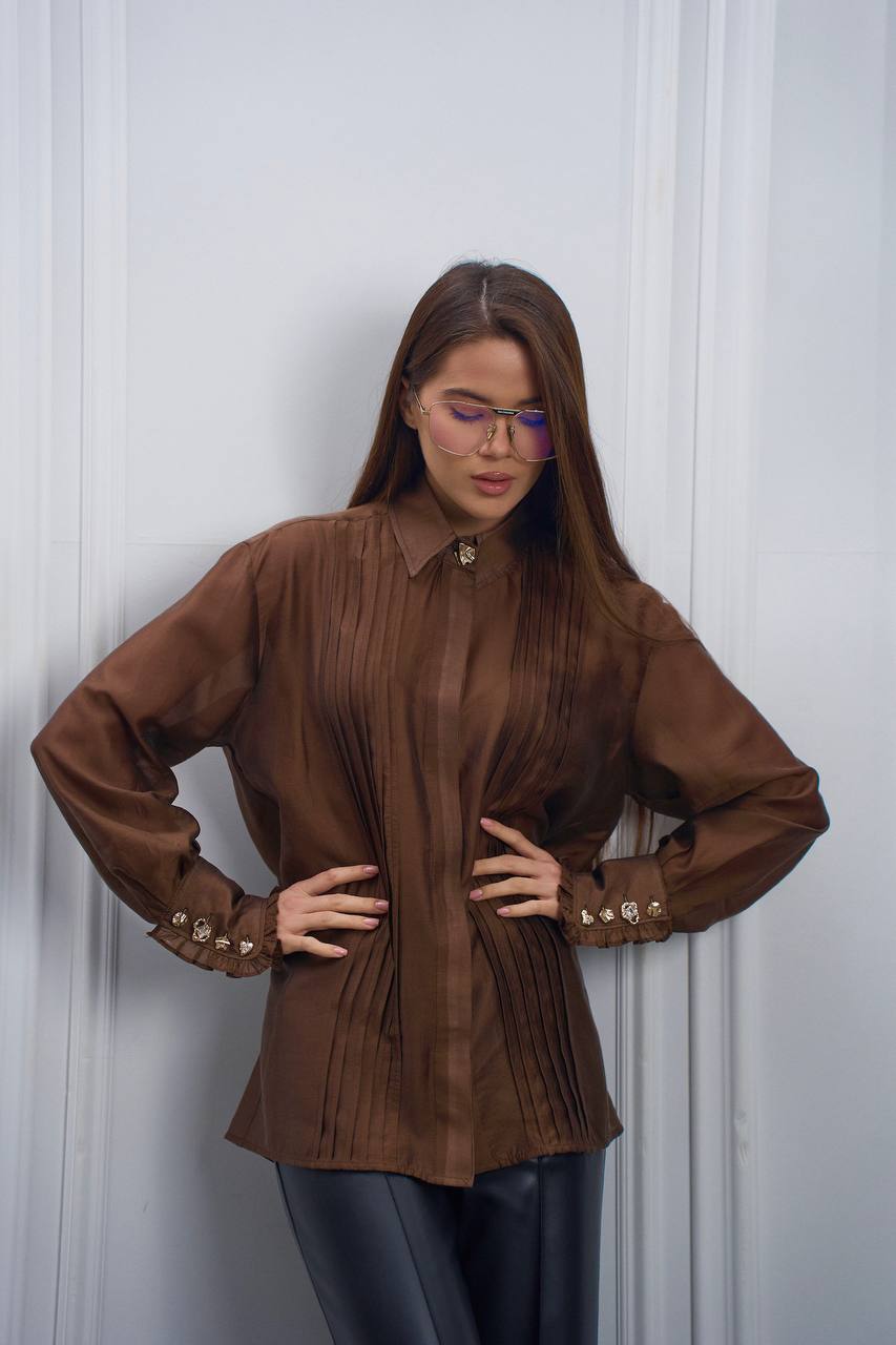 Блуза подвійна планка шоколад