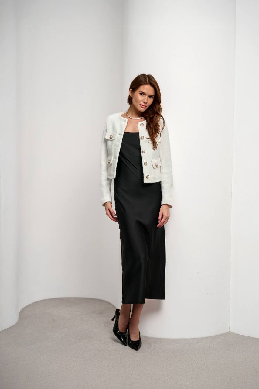 Кардиган у стилі Chanel — це поєднання елегантної класики та сучасного жіночого гардероба. Модель виконана з м’якої тканини альпака, яка приємна до тіла, добре зберігає тепло та забезпечує комфорт протягом дня.