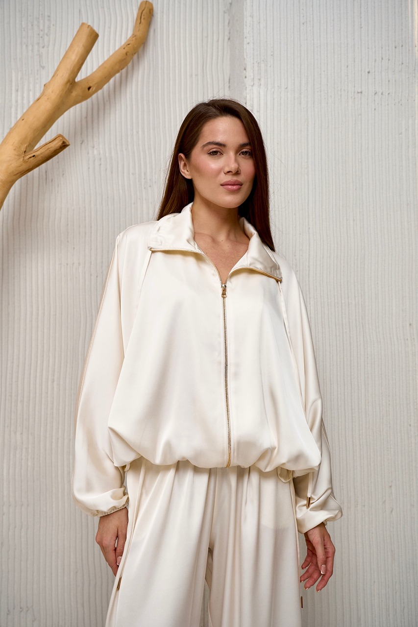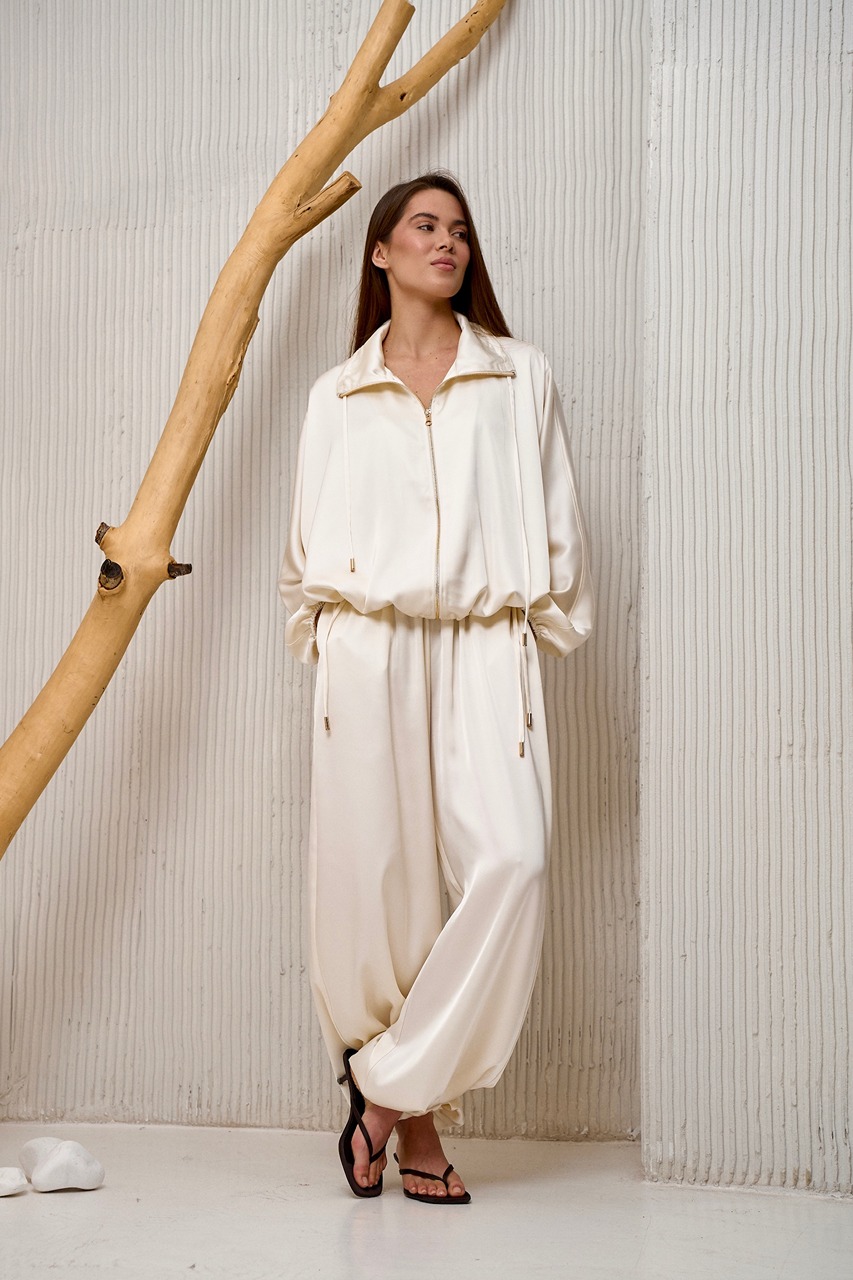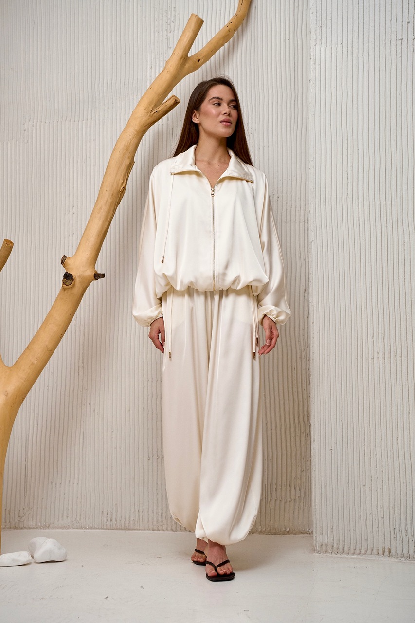 - Бомбер вільного крою та широкі штани створюють сучасний, розслаблений силует, який виглядає стильно й дорого