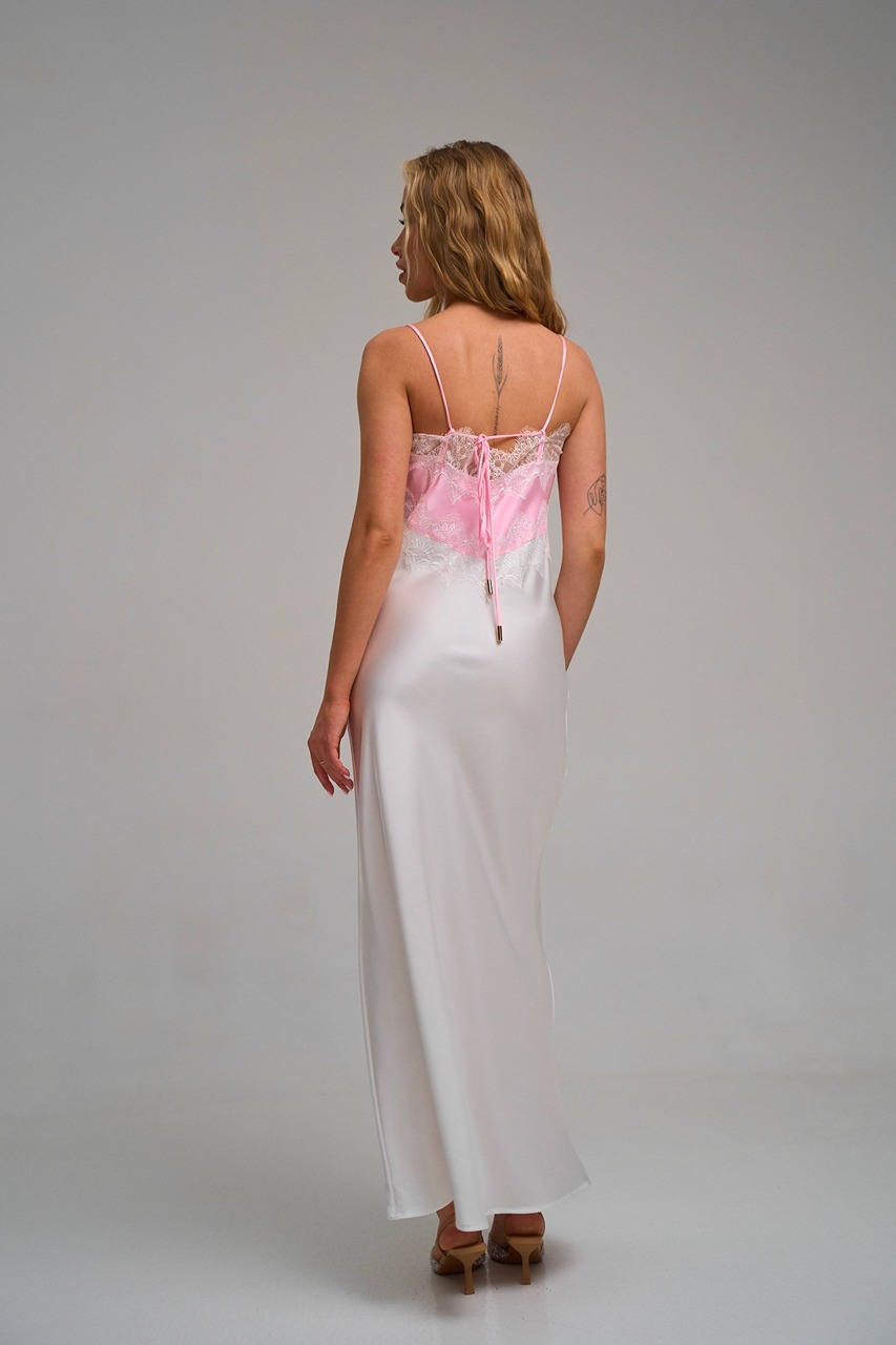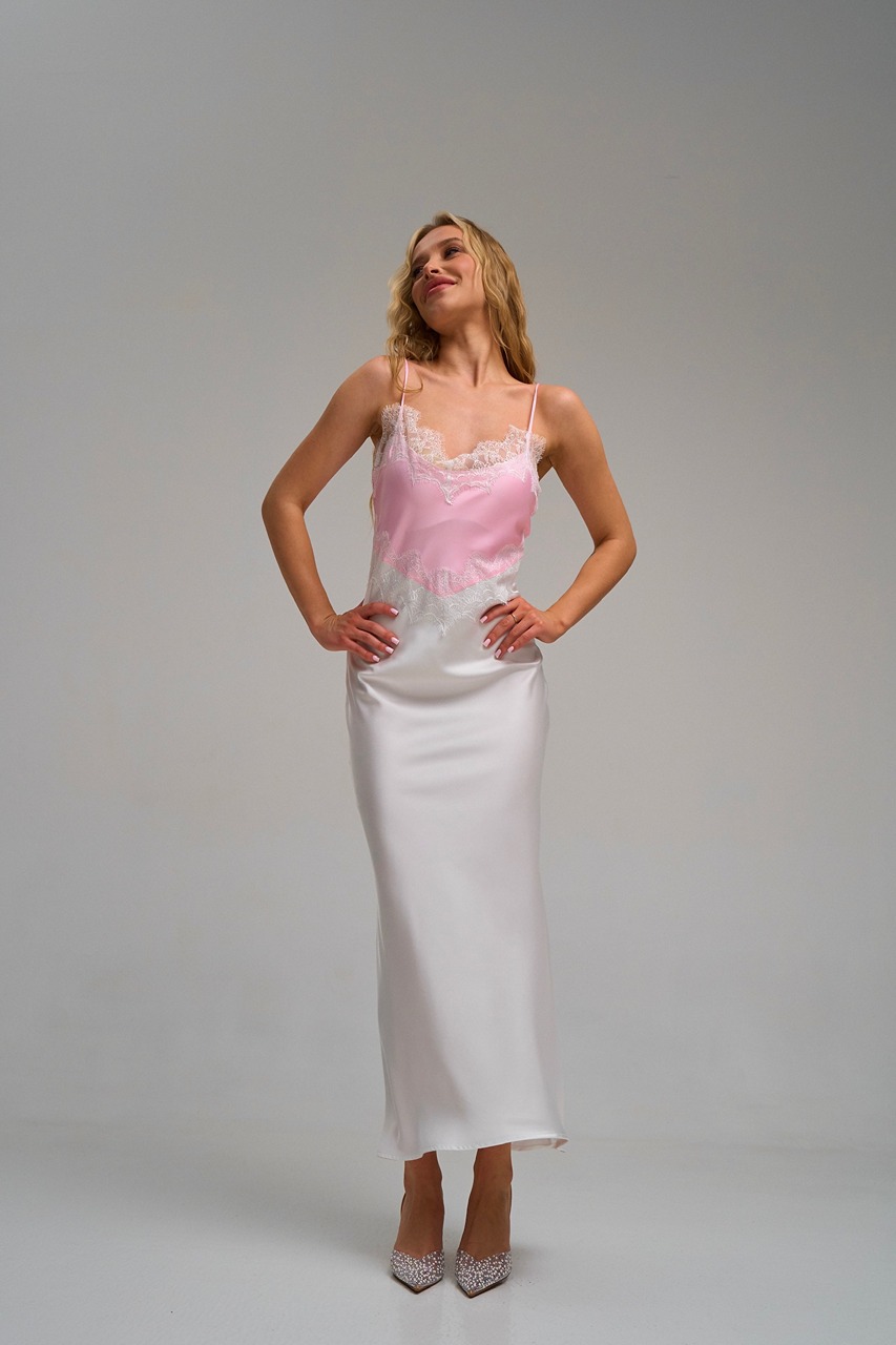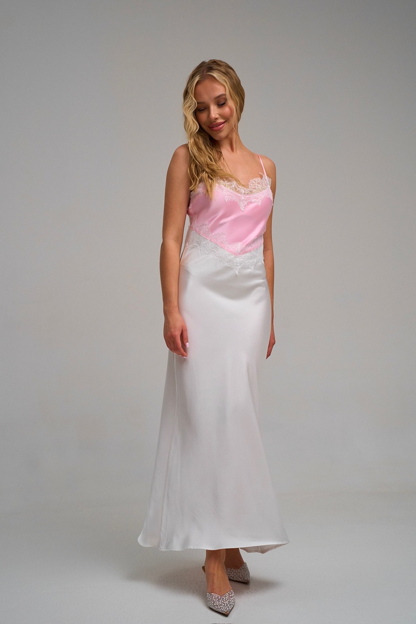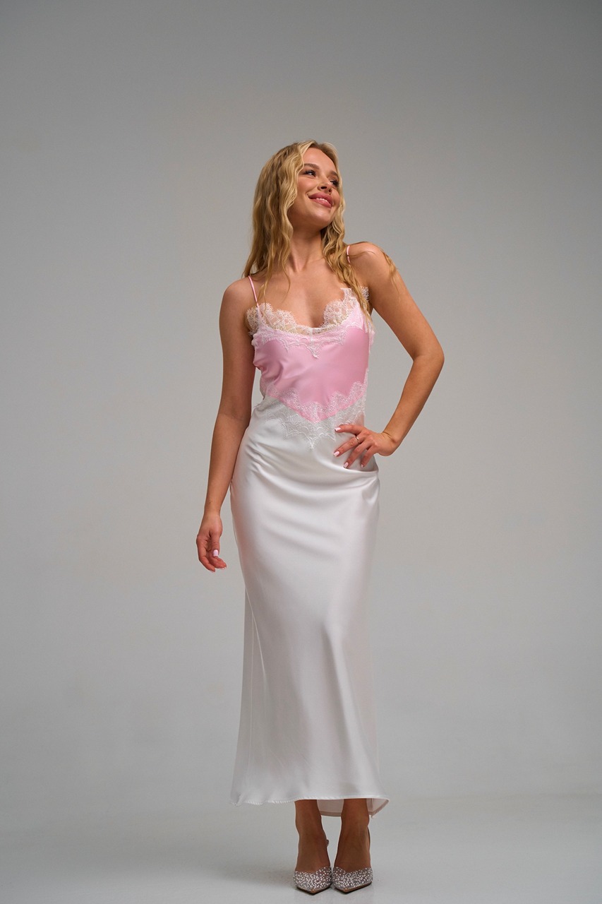 Плаття атлас двохкольорове біло-рож.