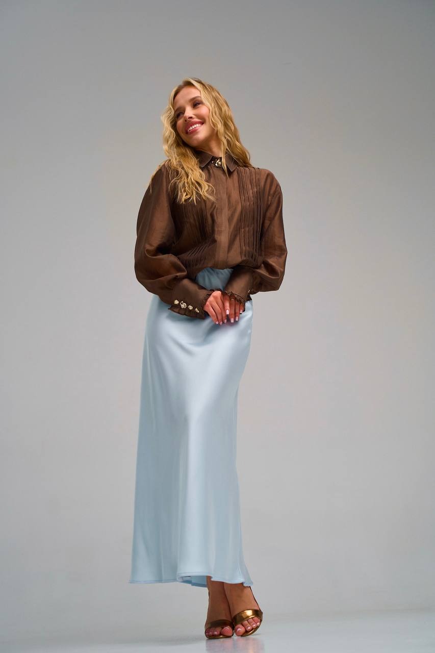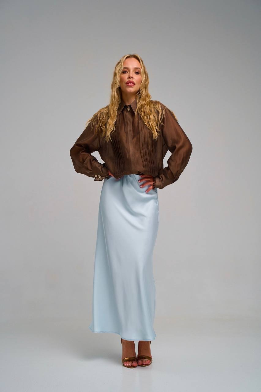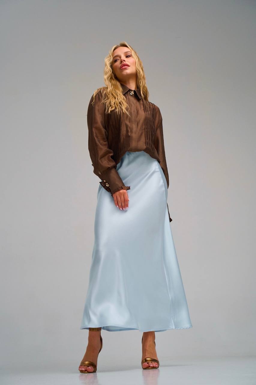 Витончена шовкова спідниця максі, створена для образів, у яких хочеться відчувати себе особливою. Легка, струмлива та неймовірно жіночна — вона м’яко огортає силует, підкреслюючи грацію рухів і додаючи образу особливого шарму.
