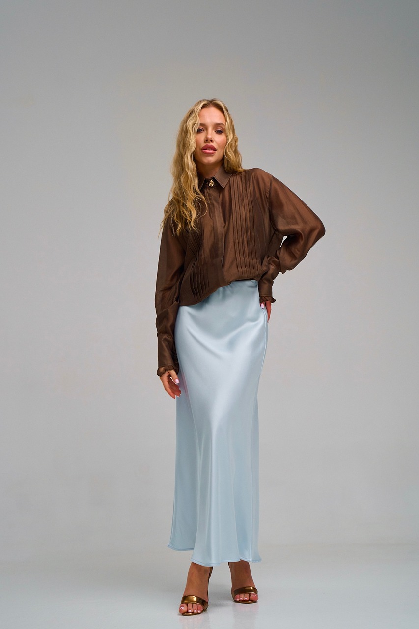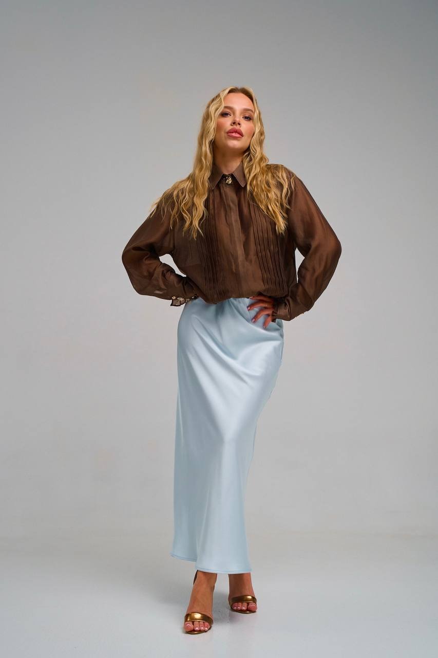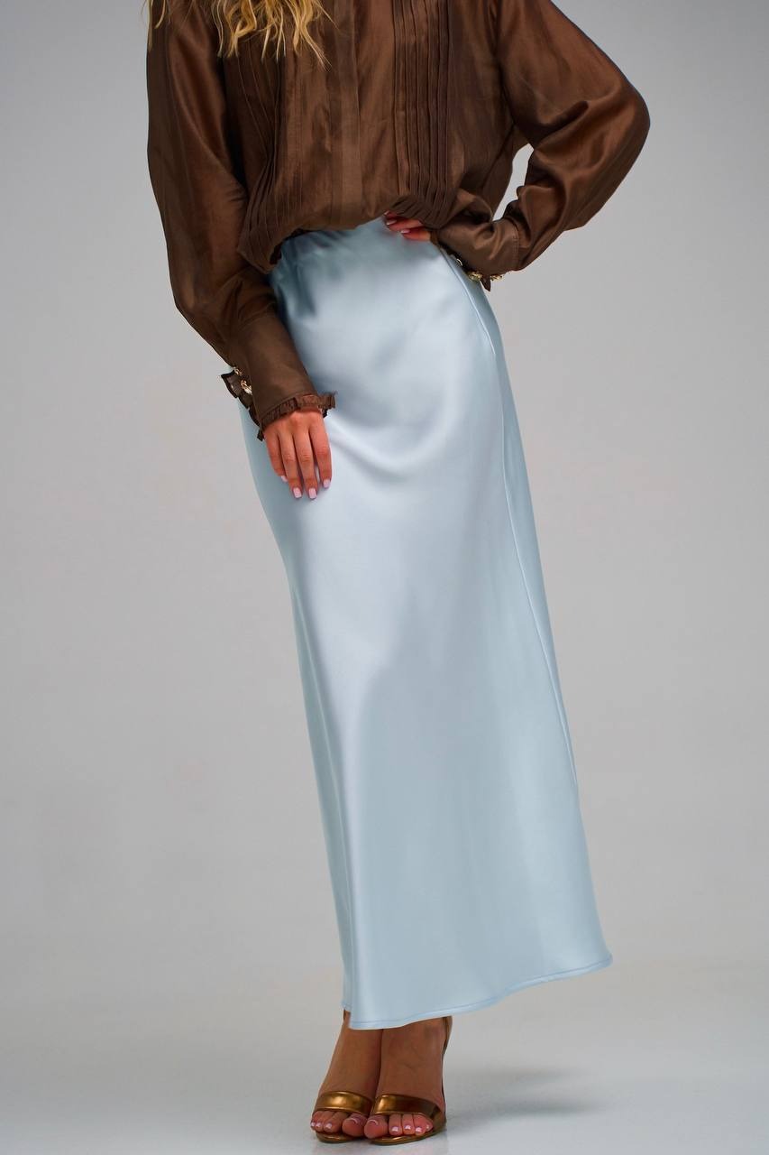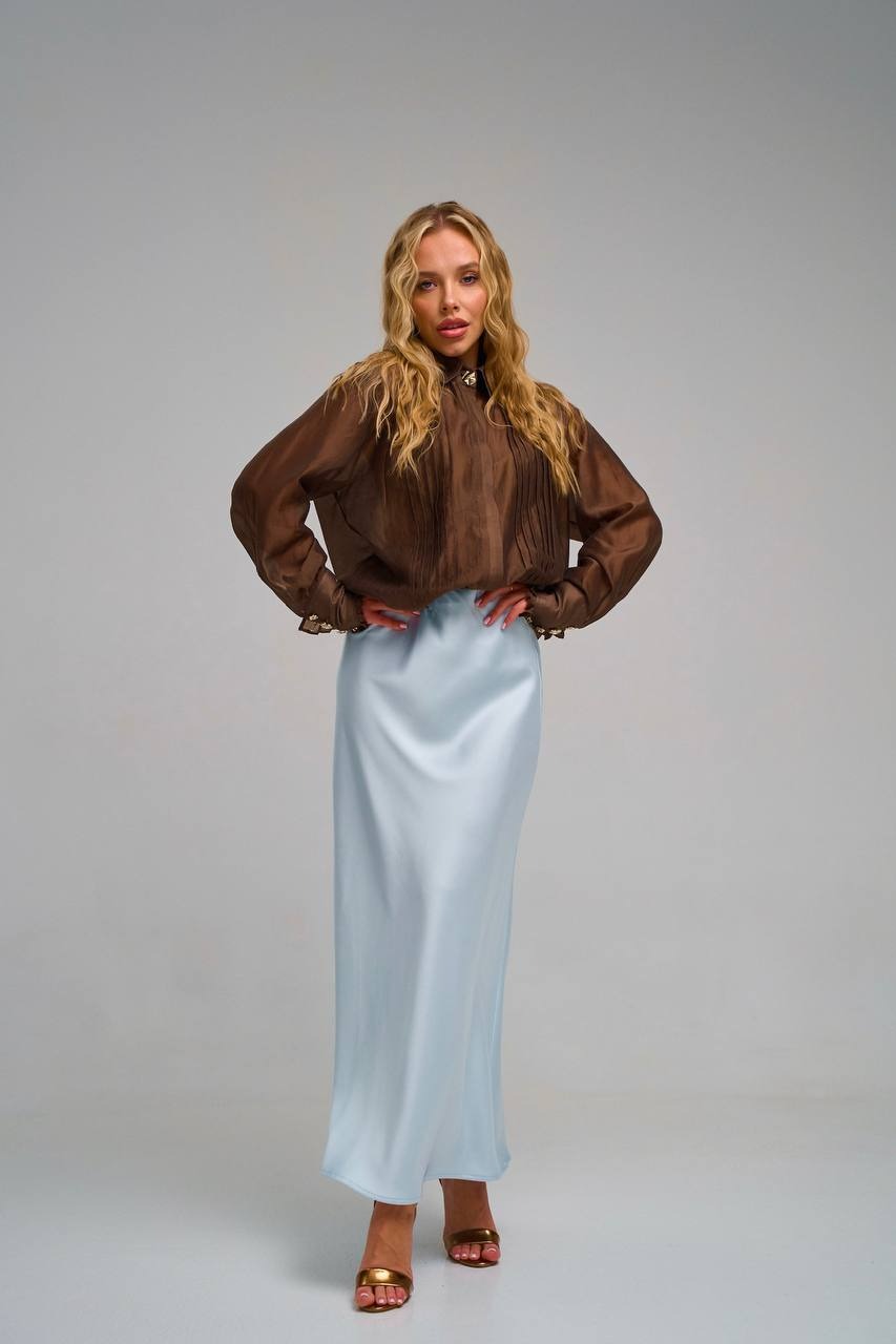 Витончена шовкова спідниця максі, створена для образів, у яких хочеться відчувати себе особливою. Легка, струмлива та неймовірно жіночна — вона м’яко огортає силует, підкреслюючи грацію рухів і додаючи образу особливого шарму.